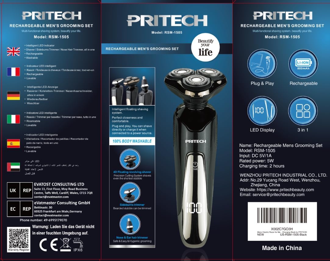 The face shaver heads use The PRITECH Float System. For a shaving smooth and cleaning.