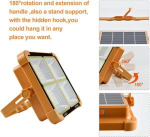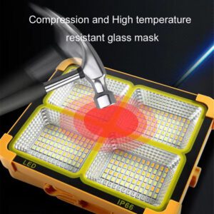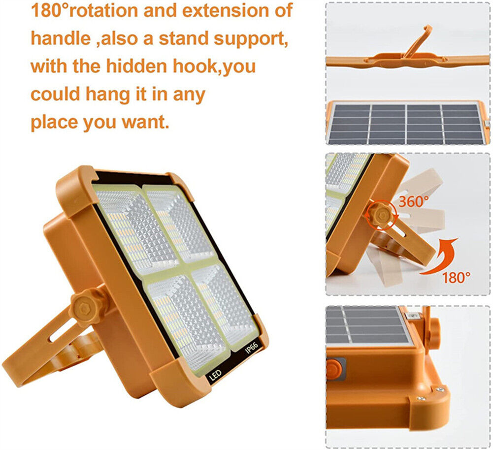 The Solar Emergency Floodlight is designed to provide reliable illumination for outdoor activities such as camping and emergency situations. This product is equipped with advanced LED technology, ensuring high luminous efficiency and durability.